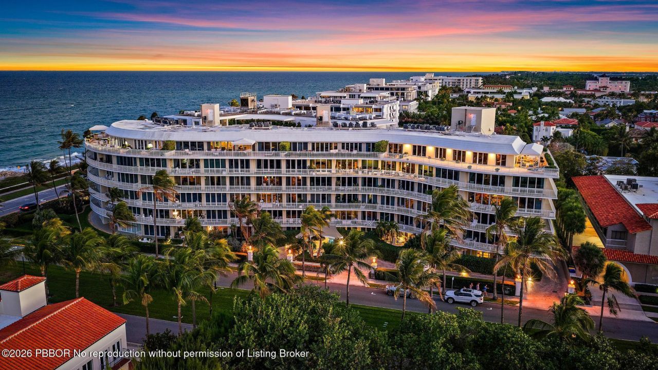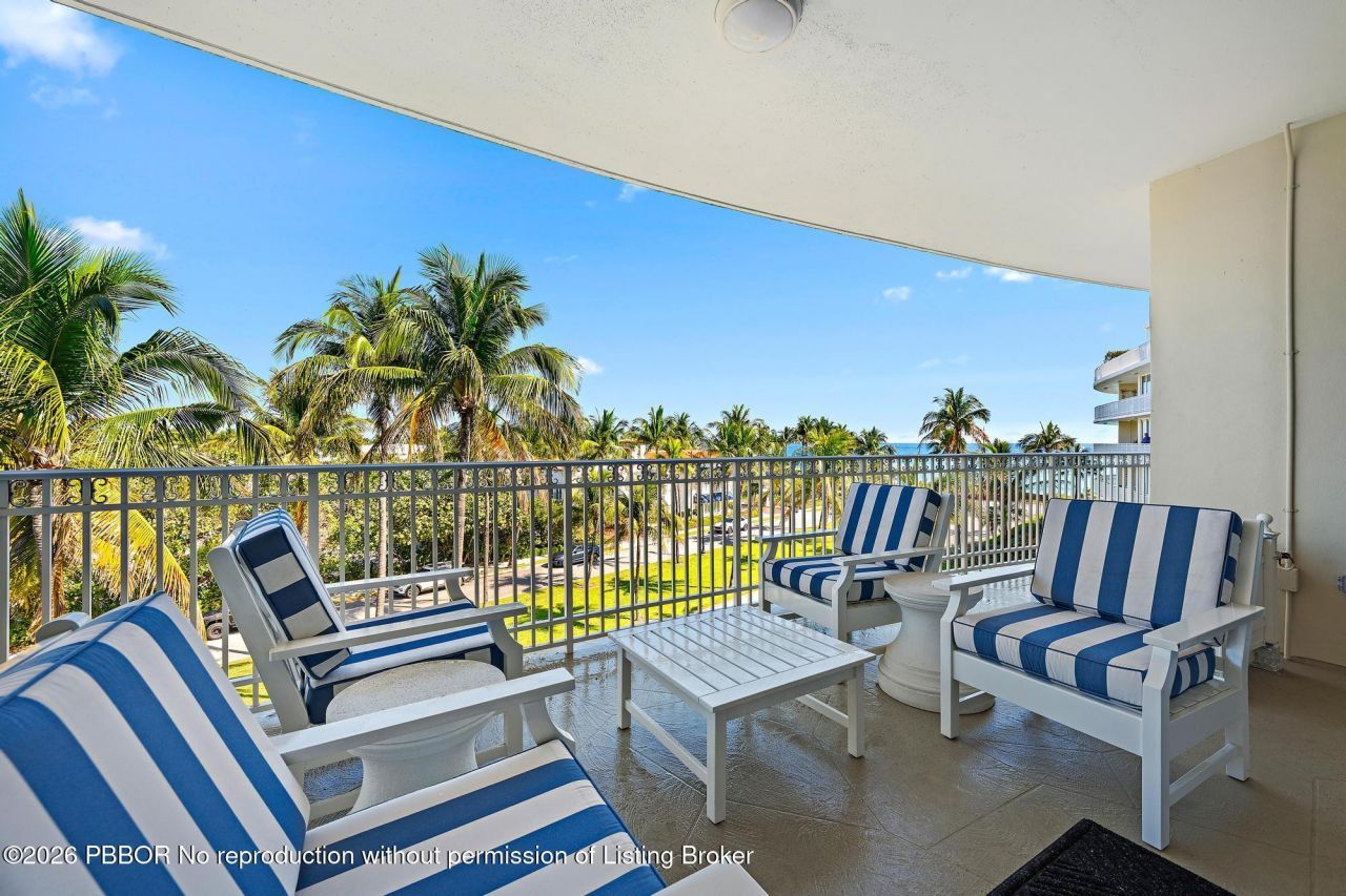 Experience refined Palm Beach living in this beautifully appointed residence at 100 Royal Palm Way, and iconic Howard Chilton Art Moderne, ocean front boutique building. With tropical views and a generous, well-designed layout, this three-bedroom, three-bath condominium, with over 3000 total square feet, offers an inviting blend of comfort, style, and coastal sophistication. The spacious living room and semi-formal dining area create an ideal setting for both everyday living and entertaining, wh...Experience refined Palm Beach living in this beautifully appointed residence at 100 Royal Palm Way, and iconic Howard Chilton Art Moderne, ocean front boutique building. With tropical views and a generous, well-designed layout, this three-bedroom, three-bath condominium, with over 3000 total square feet, offers an inviting blend of comfort, style, and coastal sophistication. The spacious living room and semi-formal dining area create an ideal setting for both everyday living and entertaining, while the eat-in kitchen--with its convenient service entrance--adds practicality and ease. Wood flooring enhances the main living spaces, and each bedroom features an en-suite bath, and ample closet space. A large balcony extends the living area outdoors, providing the perfect spot to enjoy the ocean breeze and morning light.Set within a prestigious doorman building, residents enjoy exceptional amenities including garage parking, a pool, a fitness center, and the support of a full-time on-site manager. Perfectly positioned across from the beach and just moments from world-class shopping, dining, and the scenic Lake Trail, this residence offers an unparalleled combination of luxury, convenience, and Palm Beach lifestyle.
